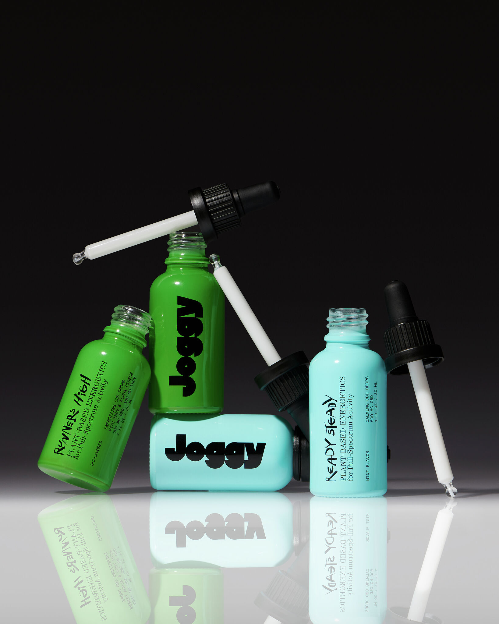 To begin, Joggy is launching with five products: Runner’s High, THCV-based product for focus and pre-activity energy; Ready Steady for pre-workout and post-activity; Super Chargies, a blend of THCV and Theacrine (a caffeine replacement); Re-Chargies, which promises to center and calm the mind and body; and Joy Stick, a balm to apply directly to sore or inflamed areas.