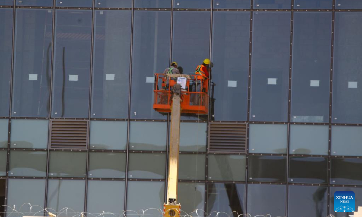 Workers work on a skyscraper in the central business district (CBD) of Egypt’s new administrative captial, May 20, 2022. Photo:Xinhua