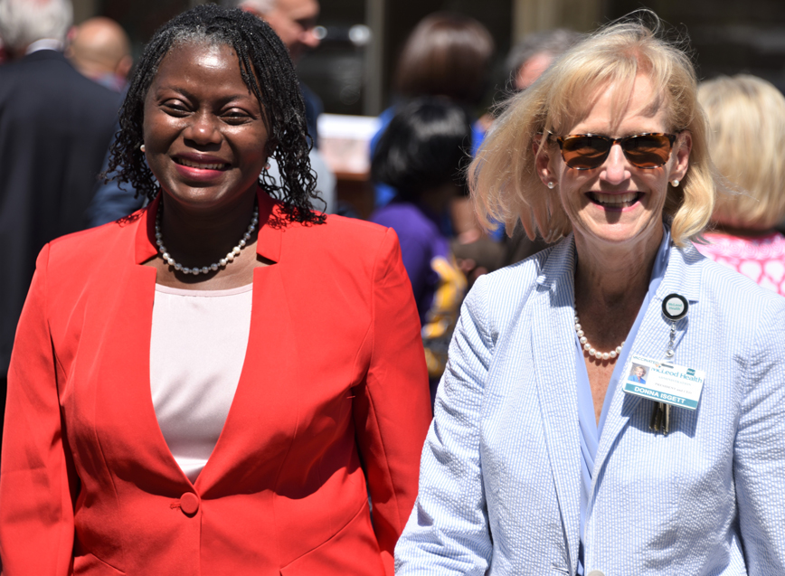 From left, Florence City Mayor Teresa Myers Ervin and McLeod Health President and CEO Donna Isgett celebrate a “great day of collaboration that benefits the entire community.”