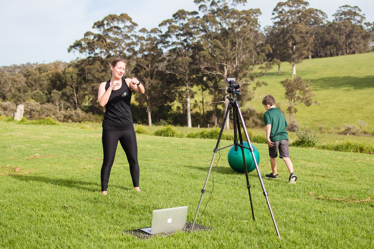 Ms O’Neill streams training sessions for regional women from the farm.
